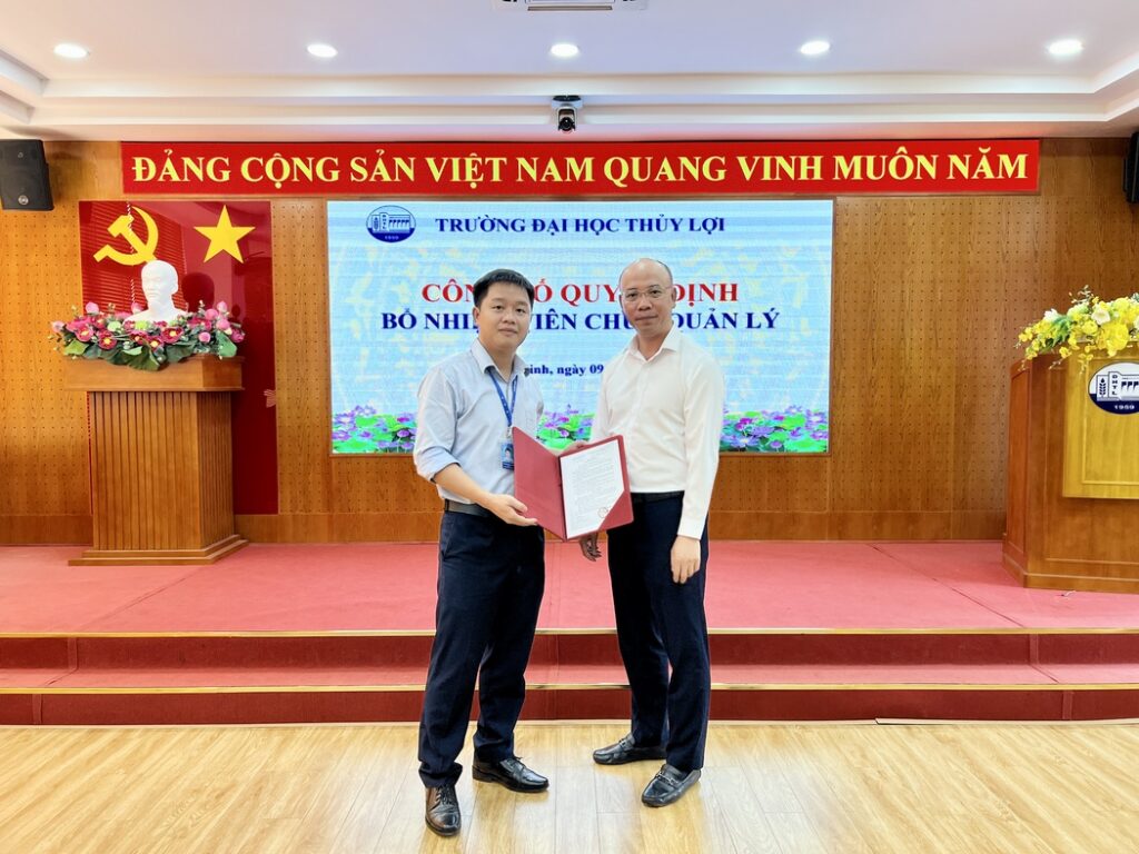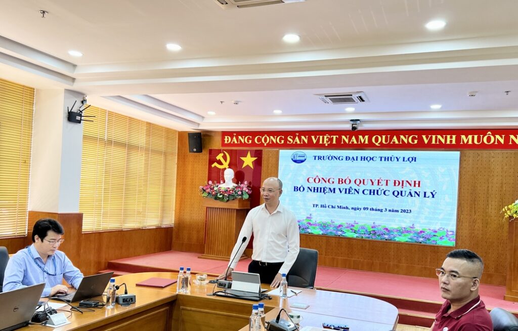 Sáng ngày 09/3/2023, Phân hiệu Trường Đại học Thủy lợi tổ chức Lễ công bố quyết định của Hiệu trưởng về việc bổ nhiệm Phó trưởng bộ môn Kỹ thuật công trình cho TS. Phạm Ngọc Thịnh.