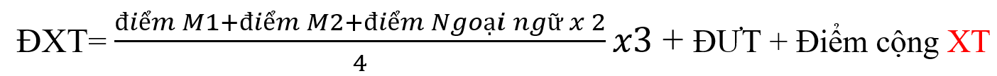 ĐXT= (điểm M1 + điểm M2 + điểm M3 + ĐƯT + Điểm cộng XT)