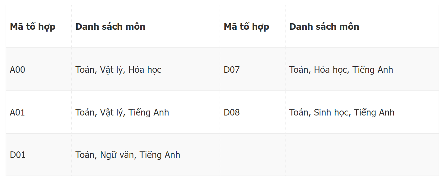 2. Ghi chú mã tổ hợp xét tuyển: