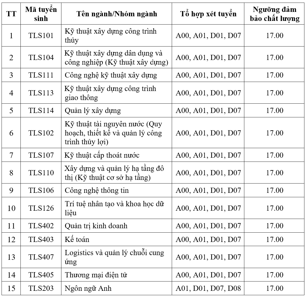 2. Mã tuyển sinh cơ sở đào tạo: (TLS)