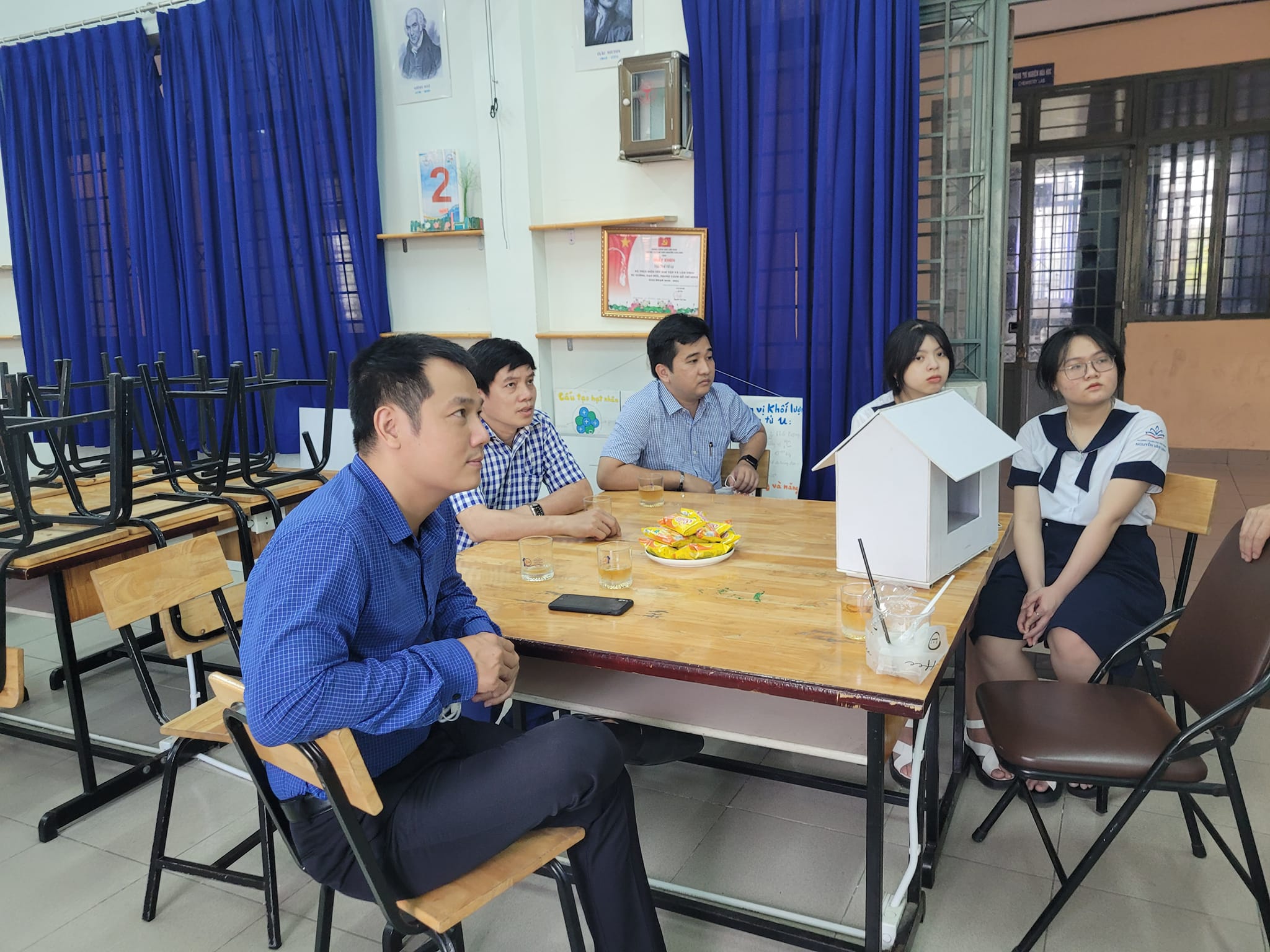 Không khí buổi làm việc của thầy cô và các bạn học sinh diễn ra đầy hào hứng và đã có thêm nhiều sáng tạo mới so với mô hình ban đầu cô và trò trường Nguyên Văn Linh đã thực hiện.