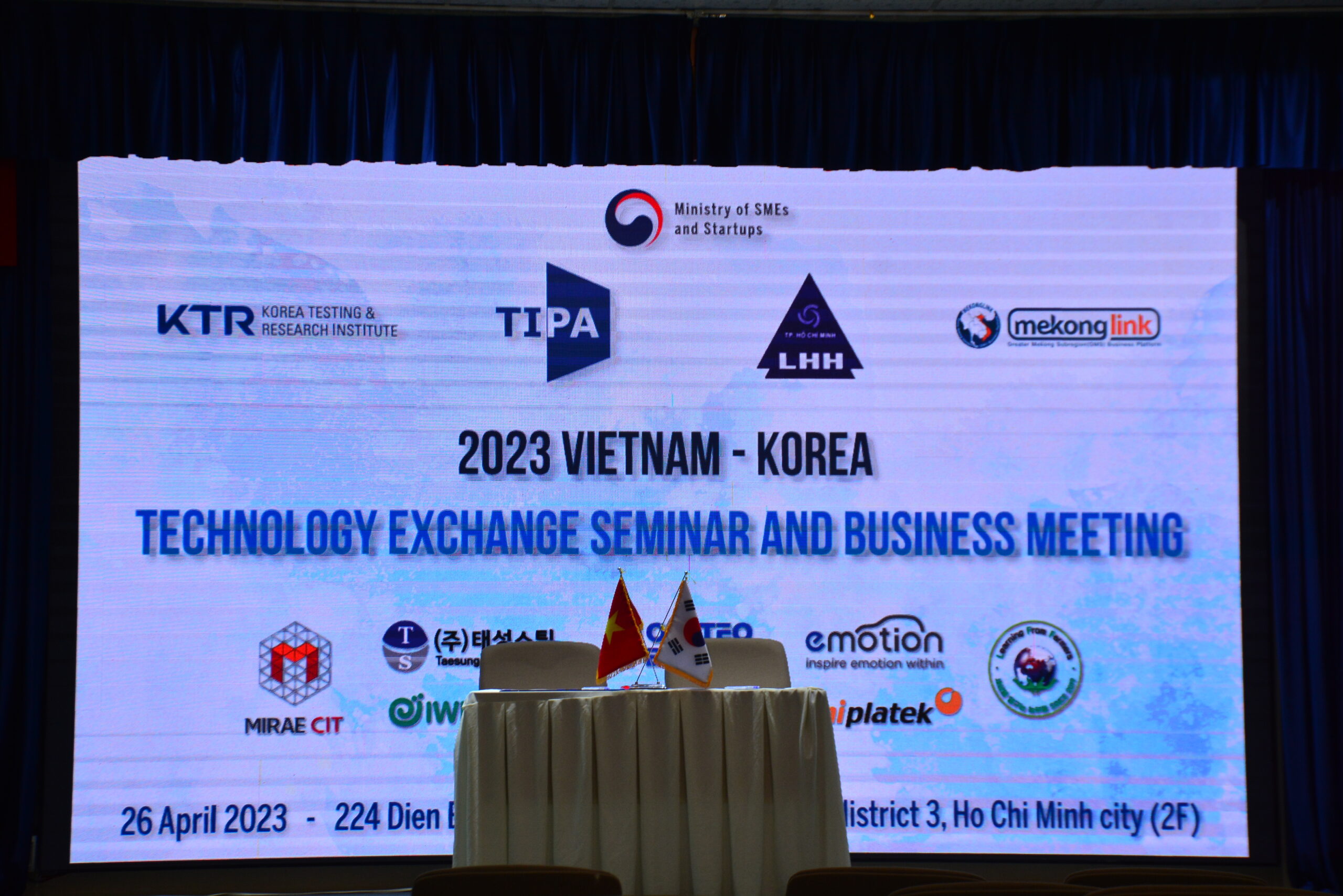 Chiều ngày 26/04/2023, Cơ quan xúc tiến thông tin và công nghệ Hàn Quốc – TIPA, phối hợp với Liên hiệp các hội khoa học và kỹ thuật TPHCM và Mekonglink tổ chức thành công hội thảo “Trao đổi công nghệ và gặp gỡ doanh nghiệp Việt Nam – Hàn Quốc”. Hội thảo nhằm mục đích tìm kiếm các đối tác để tiến hành gặp gỡ trực tiếp hiệu quả, mở rộng mạng lưới và chia sẻ bí quyết trong các dự án R&D, đào tạo và chuyển giao chuyển giao công nghệ.
