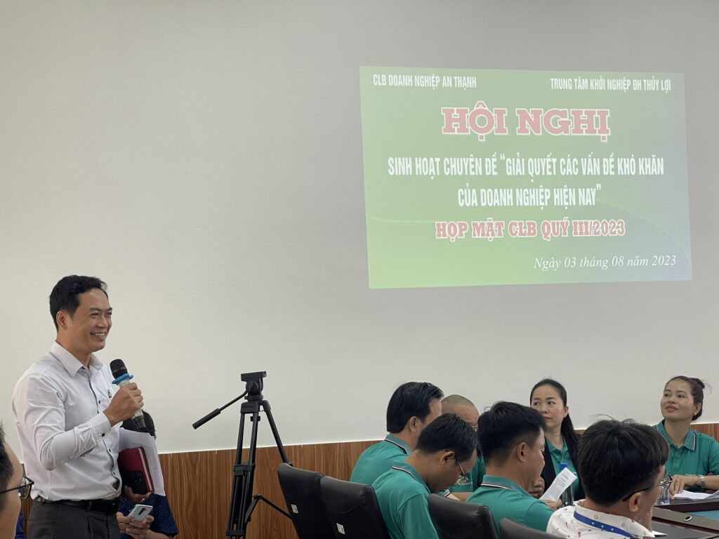Đại diện CLB Doanh nghiệp An Thạnh, ông Nguyễn Phước Bình cũng có bài báo cáo về tình hình hoạt động của CLB trong thời gian gần đây, những mặt thuận lợi – khó khăn, những kiến nghị đối với Nhà nước, lãnh đạo địa phương đồng thời báo cáo phương hướng hoạt động đến cuối năm 2023.