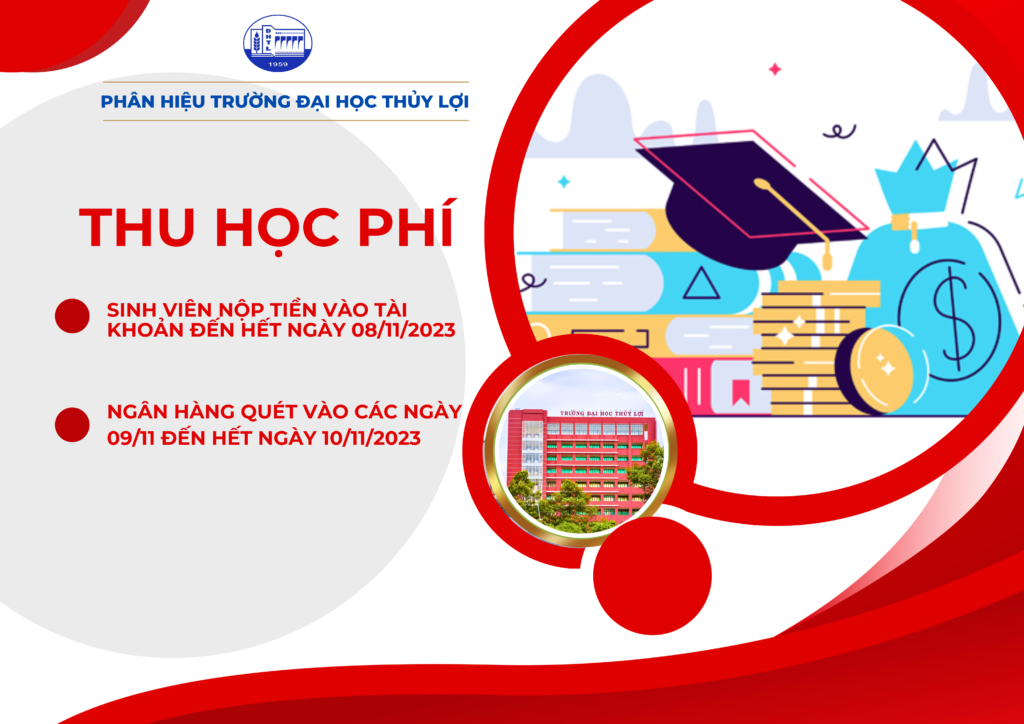Phân hiệu Trường Đại học Thủy lợi thông báo thời hạn thu học phí học kỳ 1 (kỳ chính và kỳ phụ) năm học 2023 – 2024 và tổng nợ các học kỳ trước. Thời hạn nộp tiền vào tài khoản ATM Sinh viên nộp tiền vào tài khoản đến hết ngày 08/11/2023; Thời hạn […]
