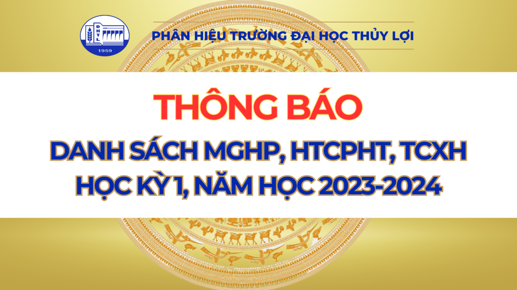 Phân hiệu Trường Đại học Thủy lợi thông báo Danh sách sinh viên đủ điều kiện miễn giảm học phí, Trợ cấp xã hội và Hỗ trợ chi phí học tập kỳ I năm học 2023 – 2024 Danh sách chi tiết: TẠI ĐÂY