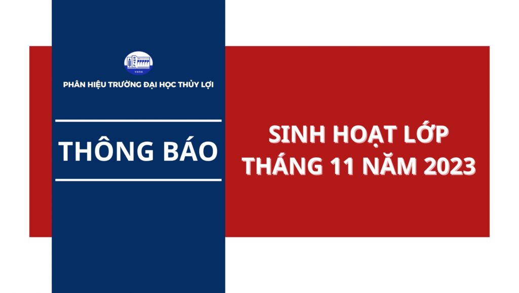 Phân hiệu trường Đại học thủy lợi Thông báo về việc phục vụ Sinh hoạt lớp tháng 11 năm 2023, cụ thể như sau: Chi tiết xem tại ĐÂY Lưu ý: Thời gian sinh hoạt lớp từ ngày 25 đến ngày 30 hàng tháng.