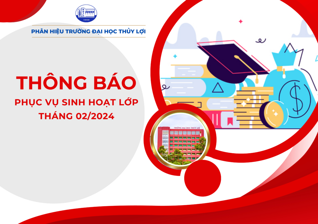 Phân hiệu trường Đại học thủy lợi Thông báo về việc phục vụ Sinh hoạt lớp tháng 02 năm 2024, cụ thể như sau: Chi tiết xem tại ĐÂY Lưu ý: Thời gian sinh hoạt lớp từ ngày 26/02/2024 đến trước ngày 05/3/2024.
