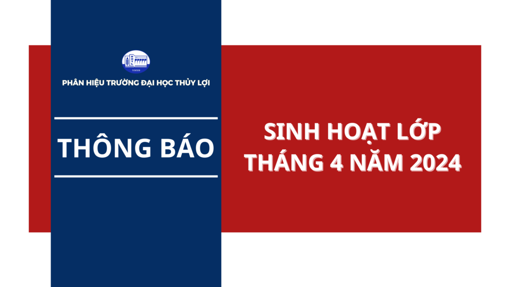Phân hiệu trường Đại học thủy lợi Thông báo về việc phục vụ Sinh hoạt lớp tháng 4 năm 2024, cụ thể như sau: Chi tiết xem tại ĐÂY Lưu ý: Thời gian sinh hoạt lớp từ ngày 6/5/2024 đến ngày 10/5/2024.