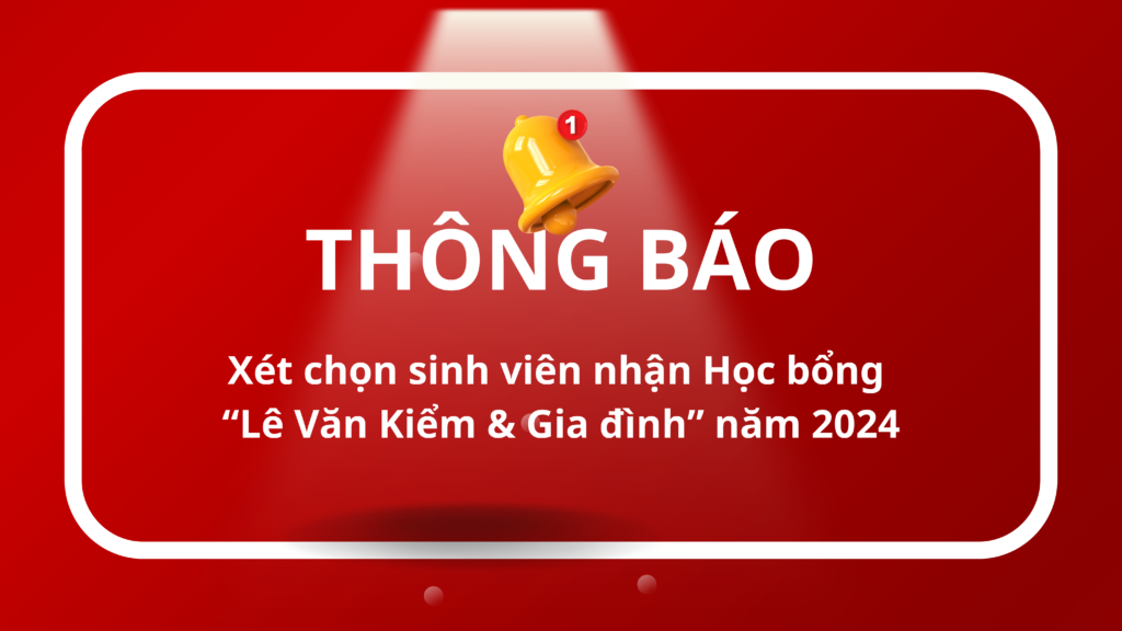KẾ HOẠCH THỰC HIỆN 1. Trước ngày 05/10/2024: Sinh viên đăng ký xét học bổng ‘Lê Văn Kiểm & Gia đình’ năm 2024 thực hiện như sau: – Truy cập vào đường link: https://forms.gle/Zx27YYnWKyzTsPAaA và khai các thông tin theo hướng dẫn; – Nộp hồ sơ đăng ký xét học bổng (bản giấy) cho phòng Truyền thông và […]