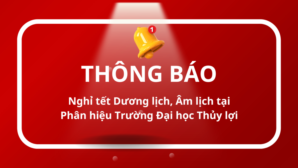 Phân hiệu Trường Đại học Thủy lợi thông báo đến quý Thầy, cô và các bạn sinh viên lịch nghỉ tết Dương lịch và Âm lịch như sau: 1. Nghỉ tết Dương lịch Giảng viên và sinh viên toàn phân hiệu được nghỉ 01 ngày thứ tư, ngày 01 tháng 01 năm 2025. 2. Nghỉ […]