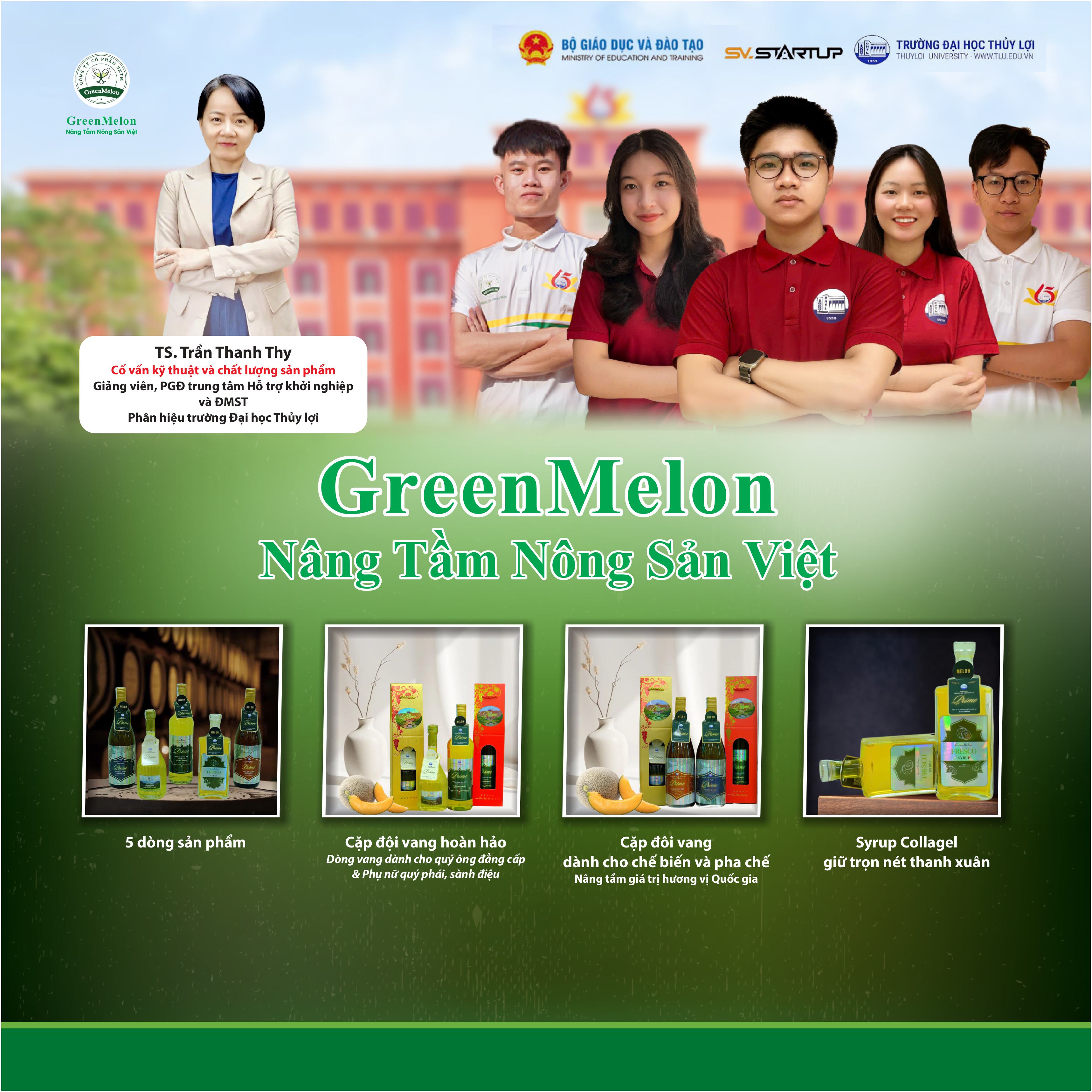 Rượu vang và syrup dưa lưới mang tên GreenMelon là hai sản phẩm của Team sinh viên Khởi nghiệp thuộc trường Đại học Thủy Lợi. Dự án “Sản xuất và kinh doanh sản phẩm GreenMelon sẽ tranh tài tại Vòng chung kết cuộc thi Học sinh, sinh viên với ý tưởng khởi nghiệp lần thứ VII do Bộ Giáo dục và Đào tạo tổ chức vào tháng 4/2025.
