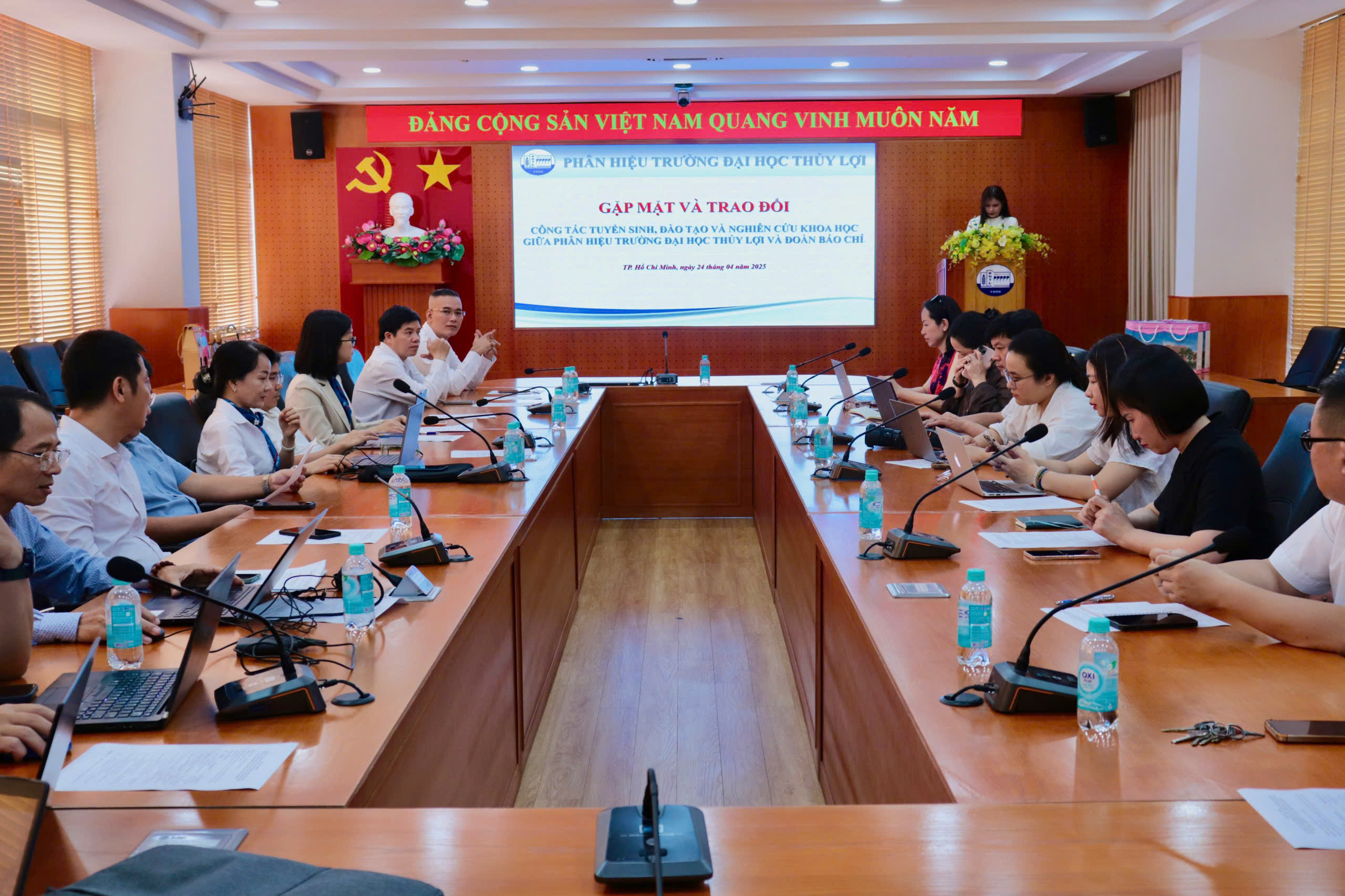 Ngày 24/4, Phân hiệu Trường Đại học Thủy lợi đã long trọng đón tiếp đại diện các cơ quan báo chí, truyền hình đến thăm và làm việc tại nhà trường. Đây là sự kiện có ý nghĩa quan trọng trong chiến lược tăng cường hợp tác truyền thông, góp phần quảng bá hình ảnh Phân hiệu đến với đông đảo học sinh, sinh viên và phụ huynh trên cả nước.