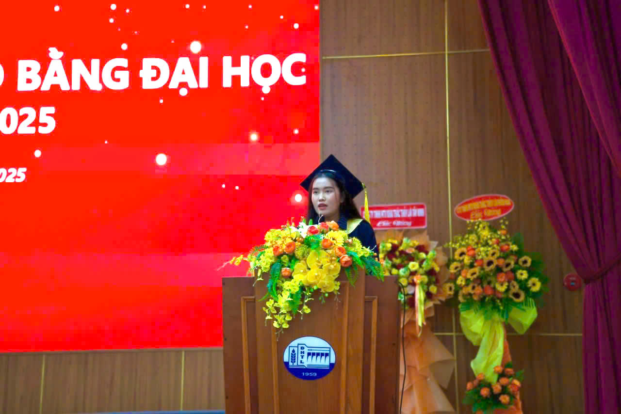 Đại diện các tân kỹ sư, tân cử nhân, em Đặng Thị Kiều Oanh bày tỏ niềm tự hào về chặng đường học tập và trưởng thành dưới mái trường Đại học Thủy Lợi. Bài phát biểu gửi lời tri ân sâu sắc đến thầy cô, nhà trường và gia đình đã đồng hành, dìu dắt suốt thời gian qua. Em khích lệ các bạn tiếp tục kiên cường, học hỏi, cống hiến trên hành trình tương lai. Buổi lễ cũng tổ chức nghi thức tri ân trang trọng dành cho quý thầy cô và phụ huynh.