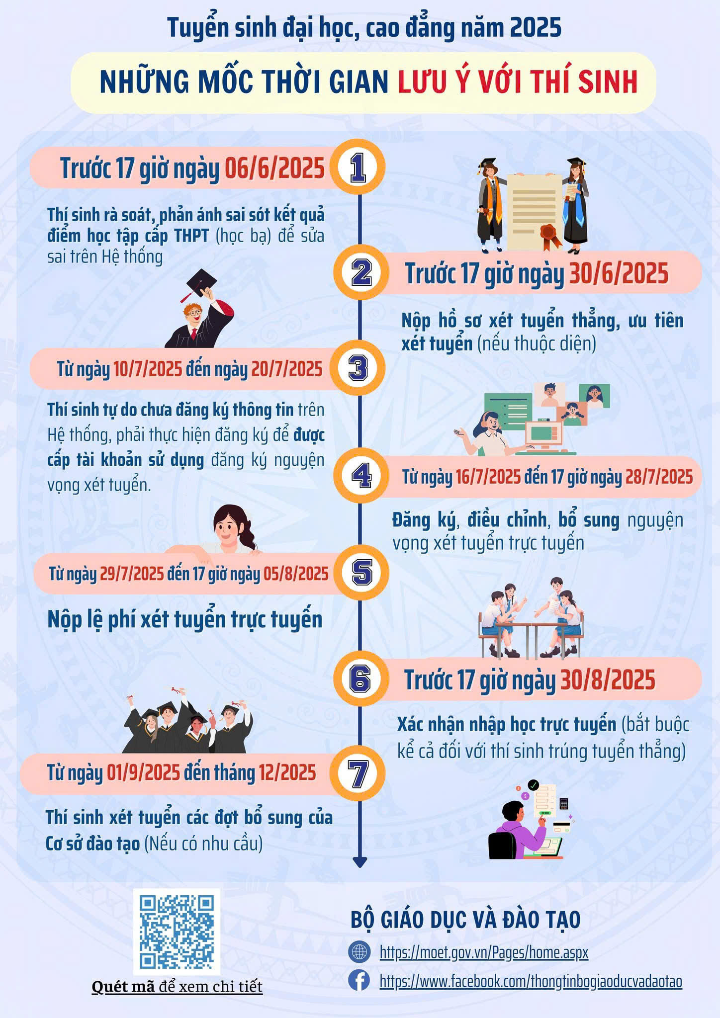 CÁC MỐC THỜI GIAN TUYỂN SINH ĐẠI HỌC, CAO ĐẲNG NĂM 2025