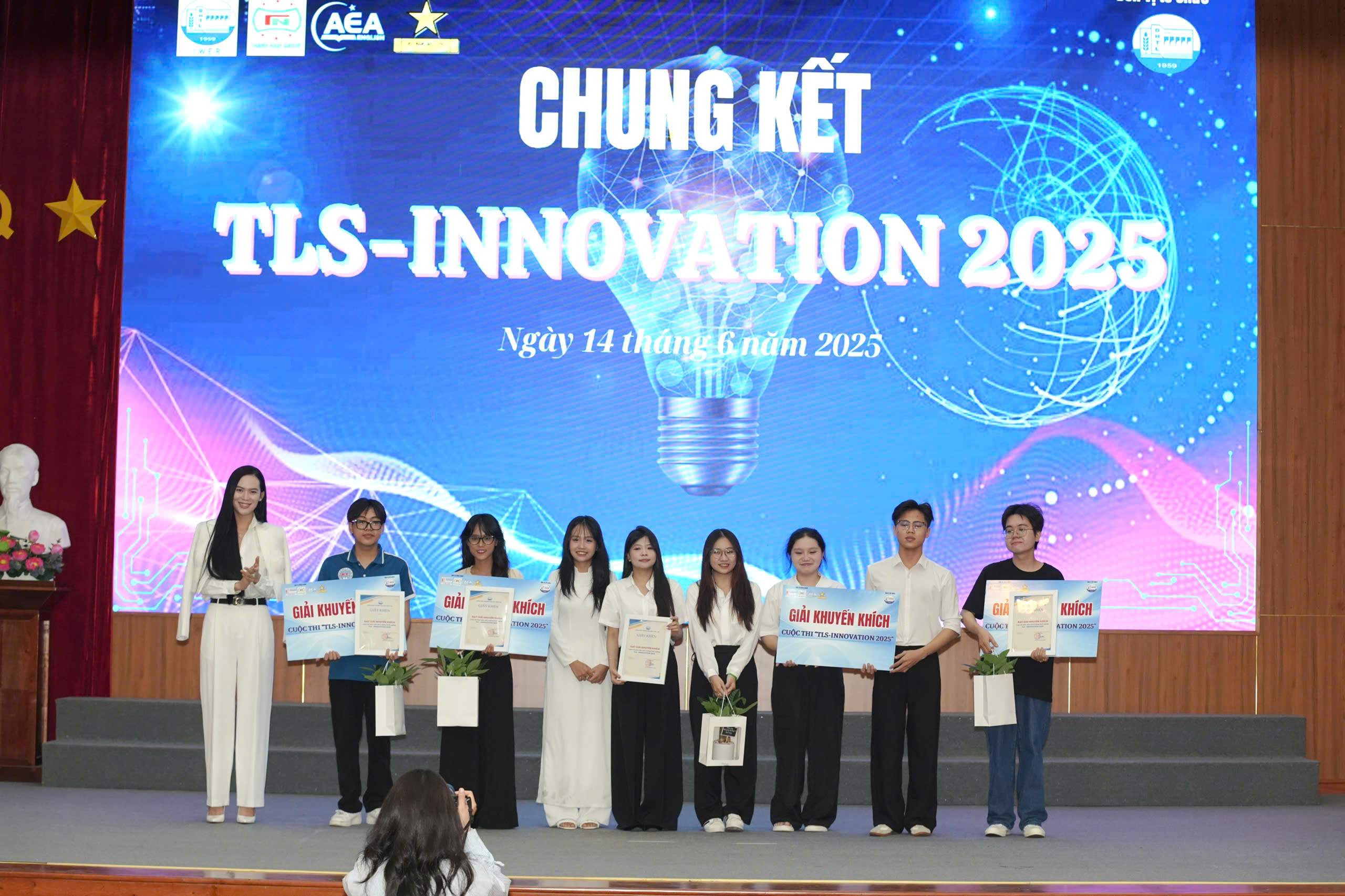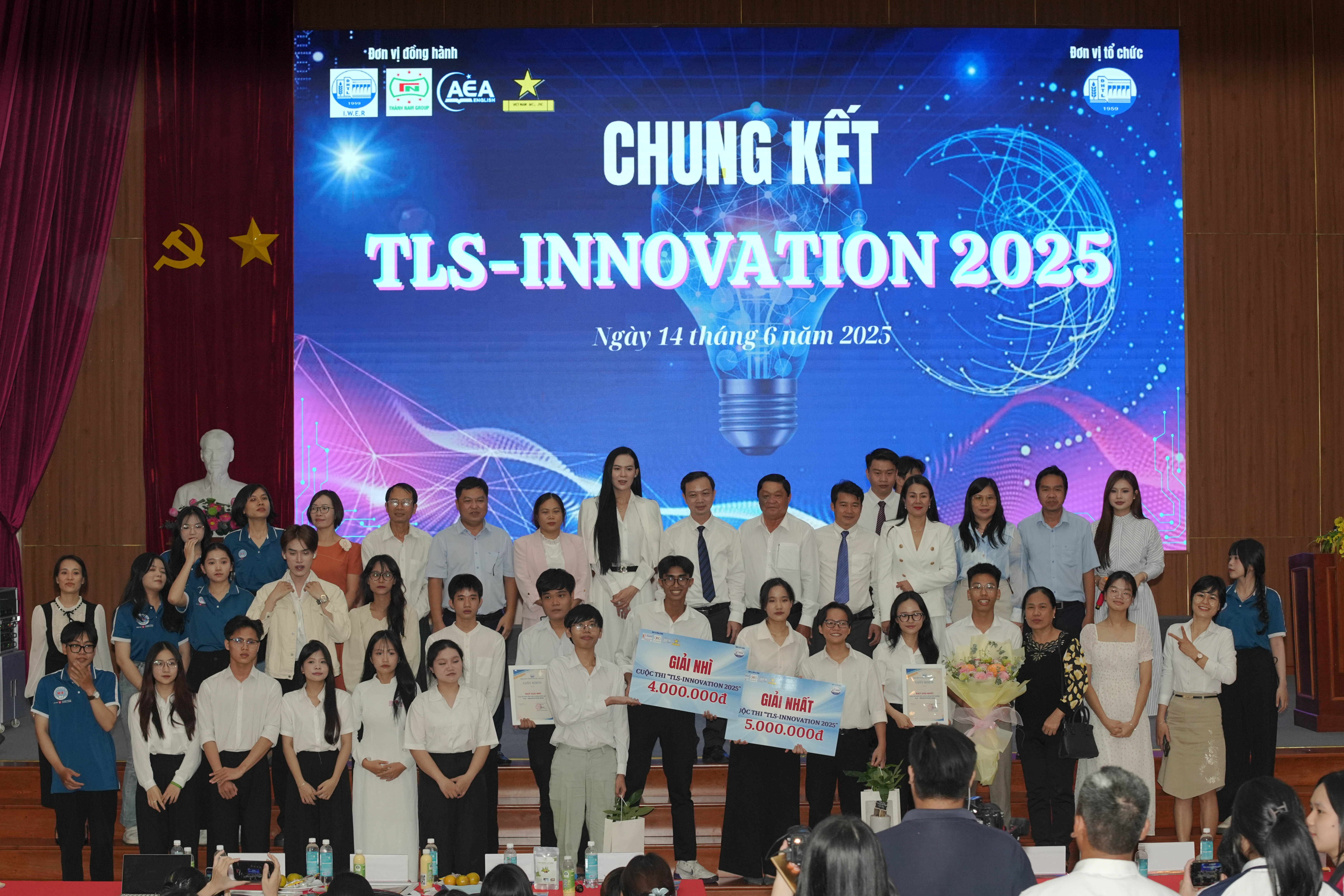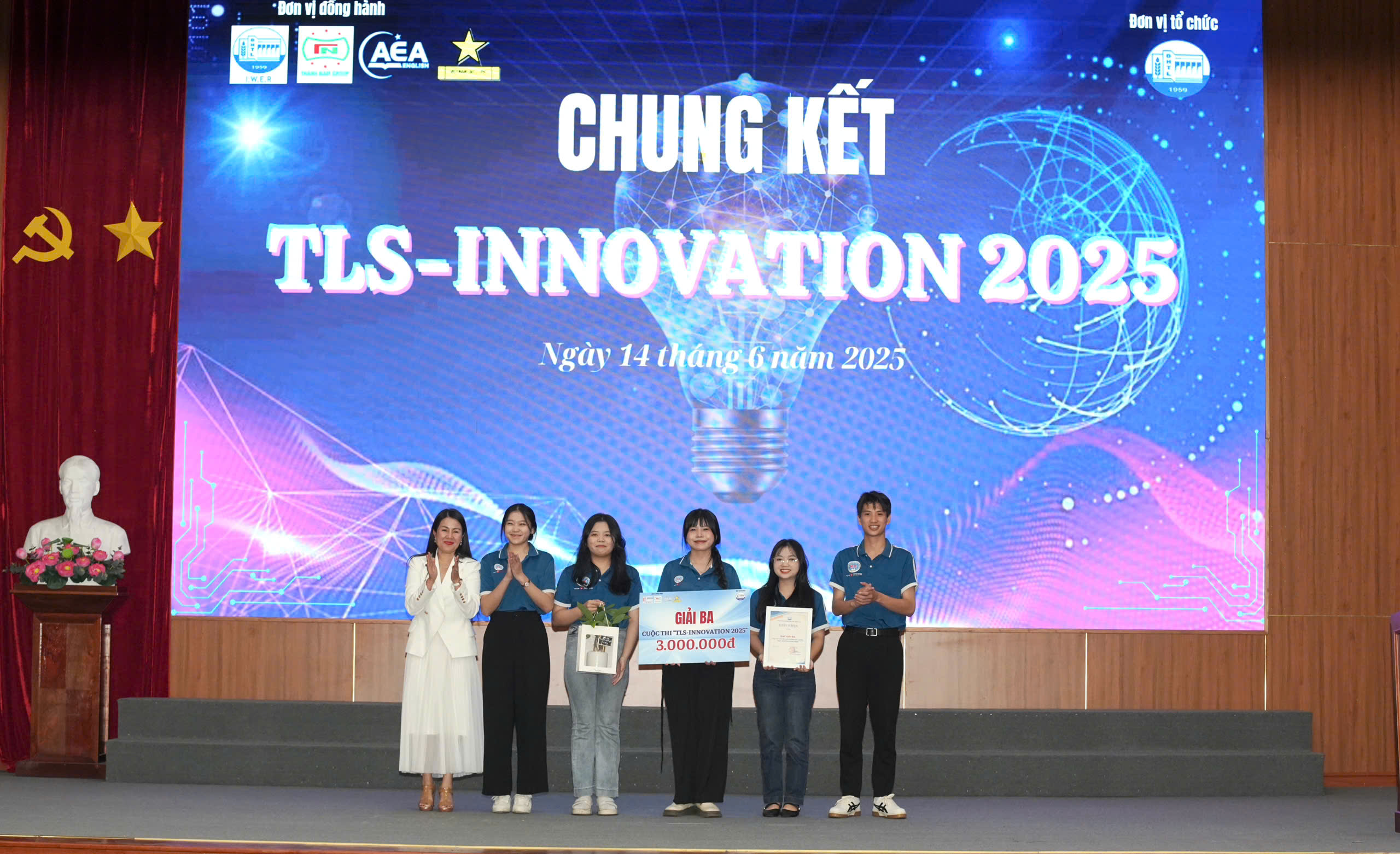 Có thể là hình ảnh về 5 người, cái bục và văn bản cho biết 'dng kành AEA 無圖 語 로로cls K CHUNG KẾT TLS TLS-INNOVATION 2025 W Ngày Ngày14thdng6ndm2025 14 thángknăm tháng G.nàm 2023'