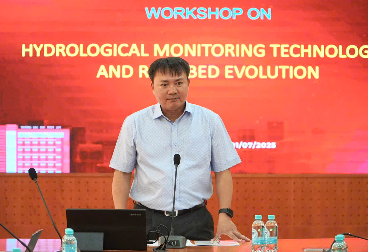 PGS. TS. Trần Đăng An, đại diện Phân hiệu, trình bày chuyên đề “Công nghệ quan trắc thủy văn và diễn biến lòng sông tại Việt Nam”, tập trung vào các ứng dụng viễn thám, mô hình số, hệ thống đo mưa – mực nước tự động trong giám sát dòng chảy, xâm nhập mặn và sạt lở ven sông tại ĐBSCL.