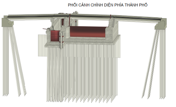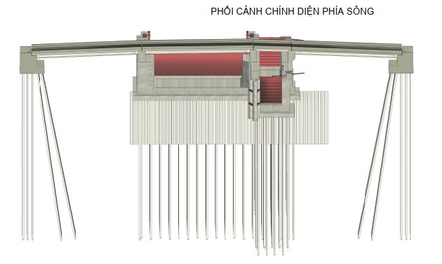 Bên cạnh đó, công trình có âu thuyền cấp VI dài 64 m, rộng 5 m, giúp tàu thuyền nhỏ lưu thông an toàn khi cống đóng ngăn triều – thể hiện tư duy thiết kế tích hợp giữa thủy lợi, giao thông và phát triển đô thị hiện đại. Hệ thống kênh dẫn được gia cố bằng rọ đá phủ vải địa kỹ thuật, kết hợp cọc BTCT 35×35×34m bố trí 104 cọc theo dạng hoa mai, bảo đảm ổn định tổng thể, an toàn chống lún và xói ngầm.