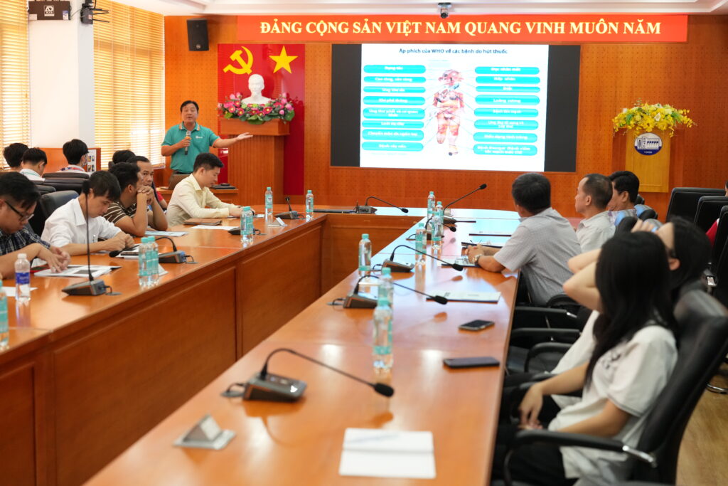 Tiếp nối chương trình, BS.CKI Nguyễn Văn Lên – Phó Giám đốc Trung tâm Kiểm soát bệnh tật TP. Hồ Chí Minh (HCDC) đã chia sẻ ba nội dung chuyên sâu, gắn với thực tiễn và có ý nghĩa trực tiếp đối với công tác xây dựng môi trường học đường không khói thuốc.