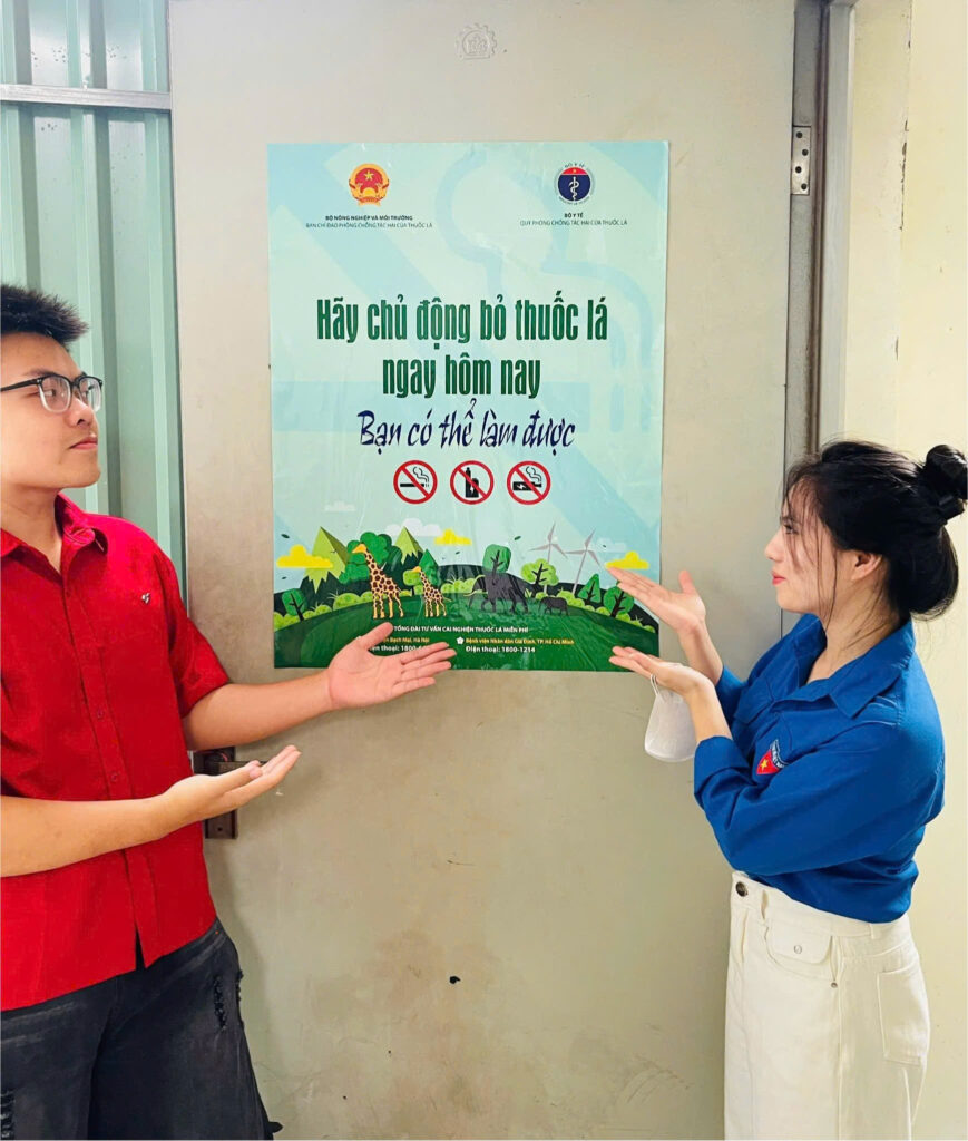 Ở phần cuối, ông Lên giới thiệu các tài liệu và hình ảnh truyền thông trực quan do Tổ chức Y tế Thế giới (WHO) phát hành, trong đó nhấn mạnh các thông điệp “Hãy bảo vệ thế hệ trẻ khỏi thuốc lá và khói thuốc” và “Xây dựng môi trường giáo dục không khói thuốc”.