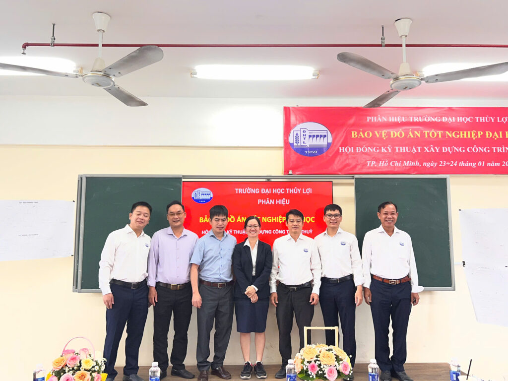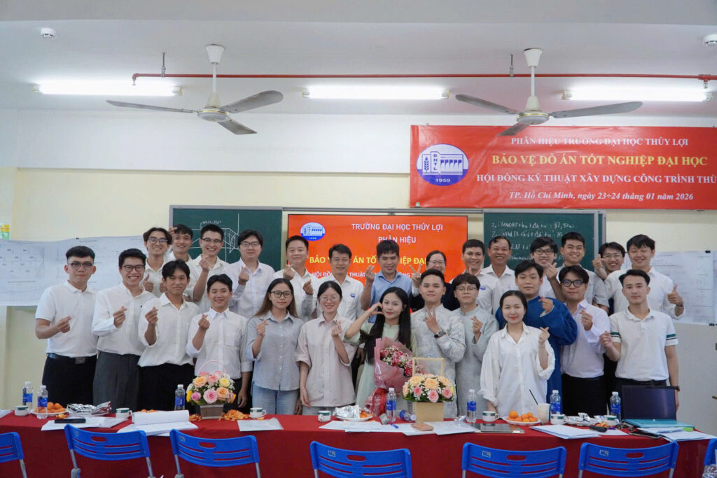 Buổi bảo vệ đồ án tốt nghiệp là dấu mốc quan trọng, khép lại hành trình đào tạo bậc đại học và mở ra chặng đường nghề nghiệp mới đối với mỗi sinh viên. Đây không chỉ là dịp để đánh giá toàn diện kiến thức, năng lực nghiên cứu và kỹ năng thực hành đã được tích lũy trong suốt quá trình học tập, mà còn là thời điểm để sinh viên khẳng định sự trưởng thành về tư duy kỹ thuật, bản lĩnh chuyên môn và khả năng vận dụng kiến thức vào giải quyết các bài toán thực tiễn trong lĩnh vực công trình thủy – ngành học giữ vai trò đặc biệt quan trọng đối với phát triển hạ tầng, quản lý tài nguyên nước và thích ứng với biến đổi khí hậu tại khu vực phía Nam.