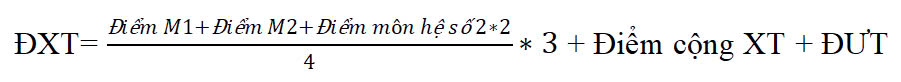 ĐXT= Điểm M1 + Điểm M2 + Điểm M3 + Điểm cộng XT + ĐƯT