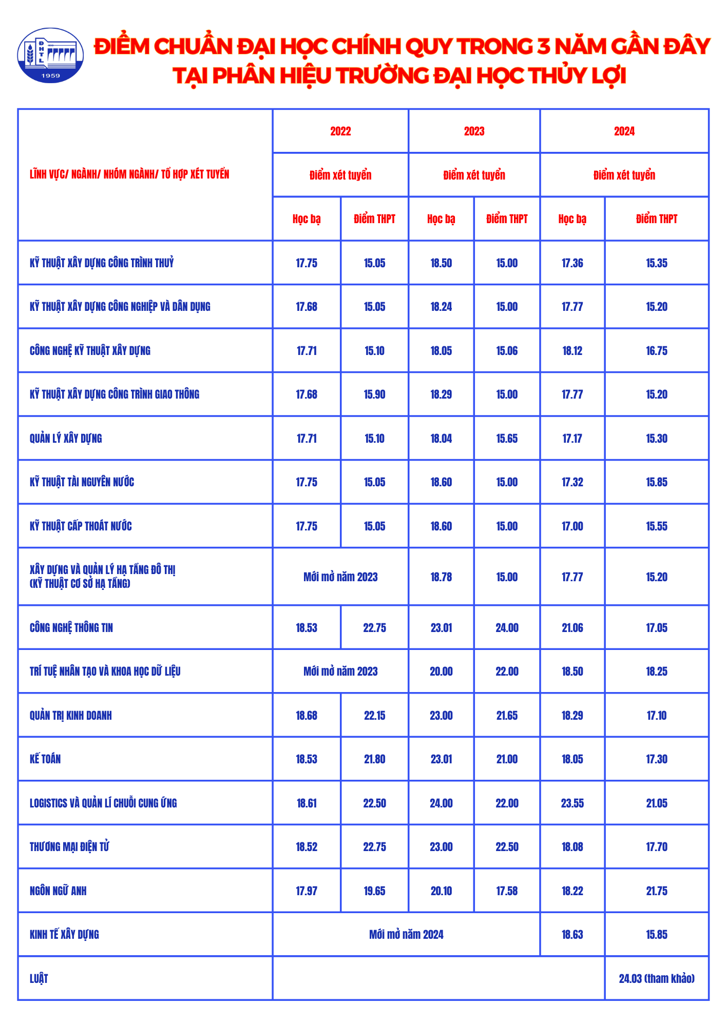 ỹPHÂN HIỆU TRƯỜNG ĐẠI HỌC THỦY LỢI THÔNG BÁO TUYỂN SINH TRÌNH ĐỘ ĐẠI HỌC HỆ CHÍNH QUY NĂM 2025